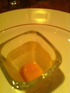 Before dessert, we had another amuse bouche.  It was essentially a raspberry smoothie and was delicious.