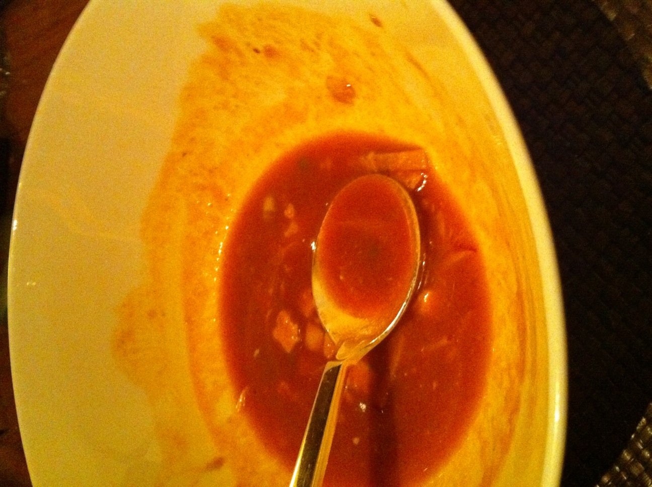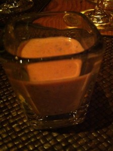 Our meal started with an amuse bouche of butternut squash soup with spiced apples and picante. (I forgot to take a picture before I drank it!)