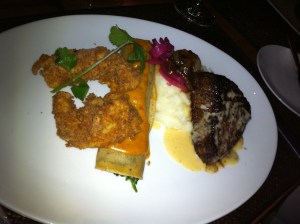 My dad ordered the filet with chicken fried lobster. It was a fun play on a surf and turf dish.