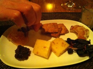 For dessert, I had a cheese plate with a local Gouda, house-made sesame crackers, jam and honeycomb. I love having cheese for my last course, and this was really great.  The Gouda was slightly sharp and paired well with the crackers and honey.