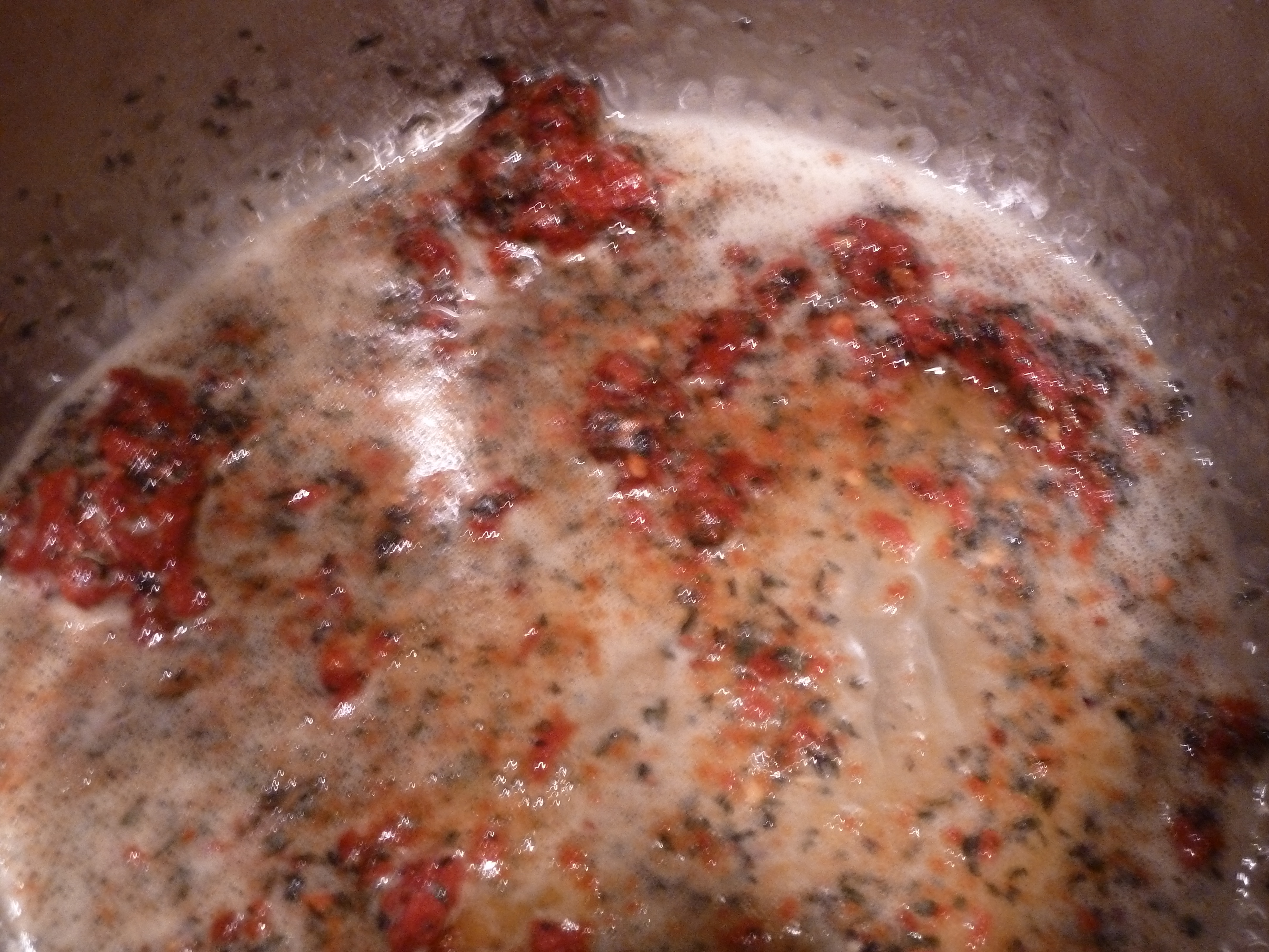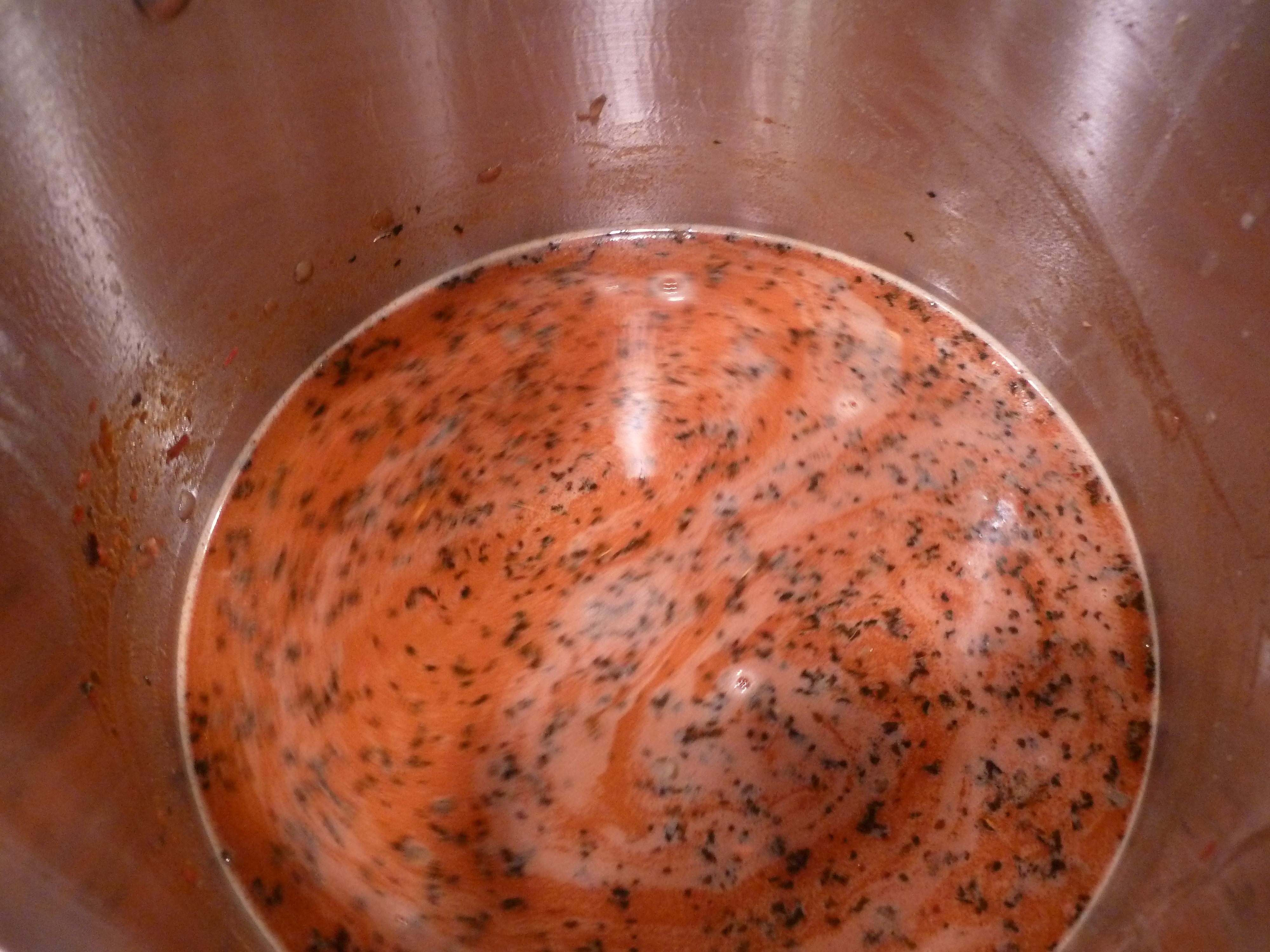 When the roux is the right color, add the dried mint and chili flakes.