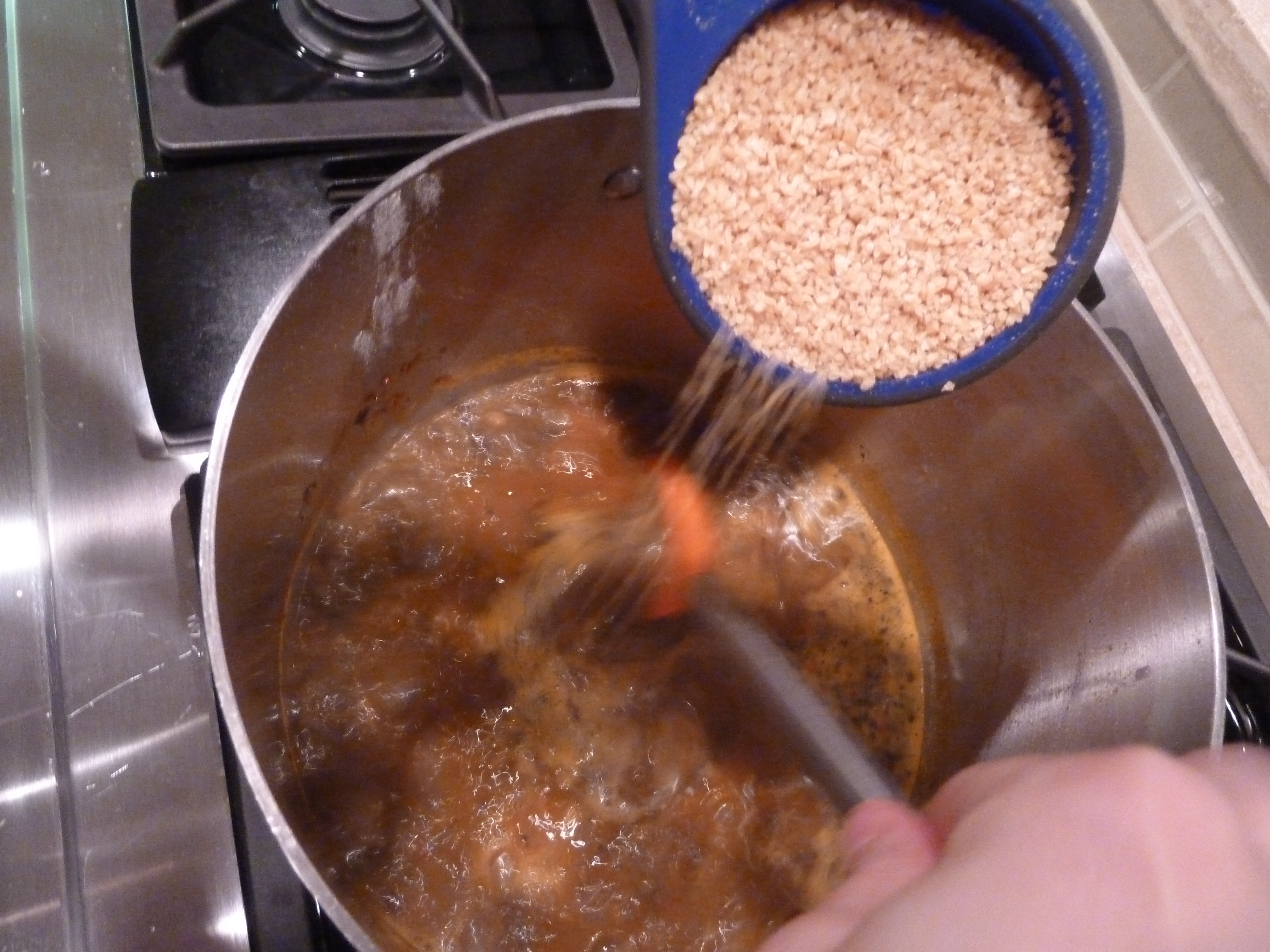 Once the soup comes to a boil, add the bulgar.