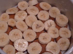 Then layer sliced bananas on top and alternate the layers until you’ve reached the top of the dish.