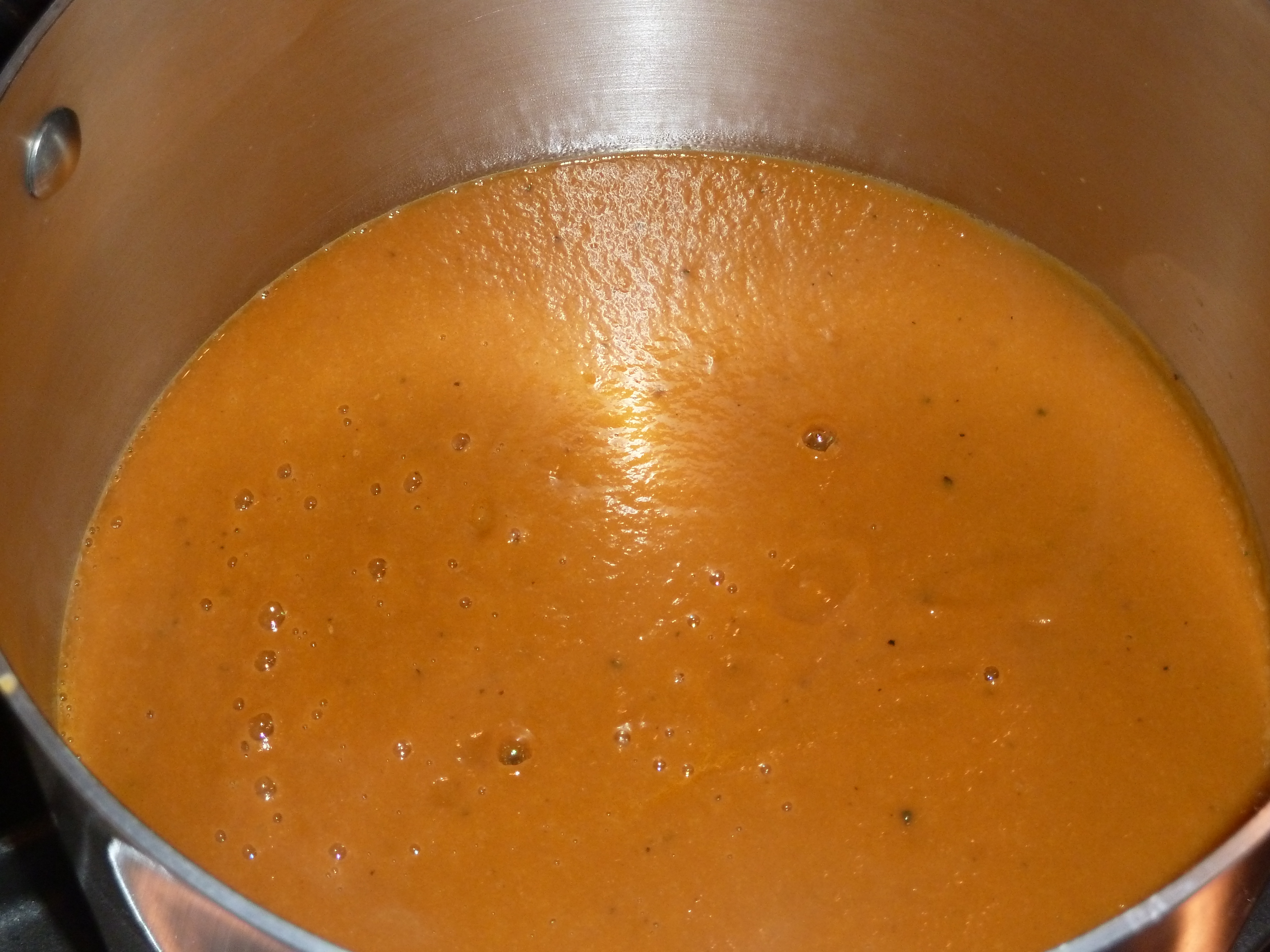 Remove the bay leaf and thyme sprig from the dutch oven and empty the contents into a blender.