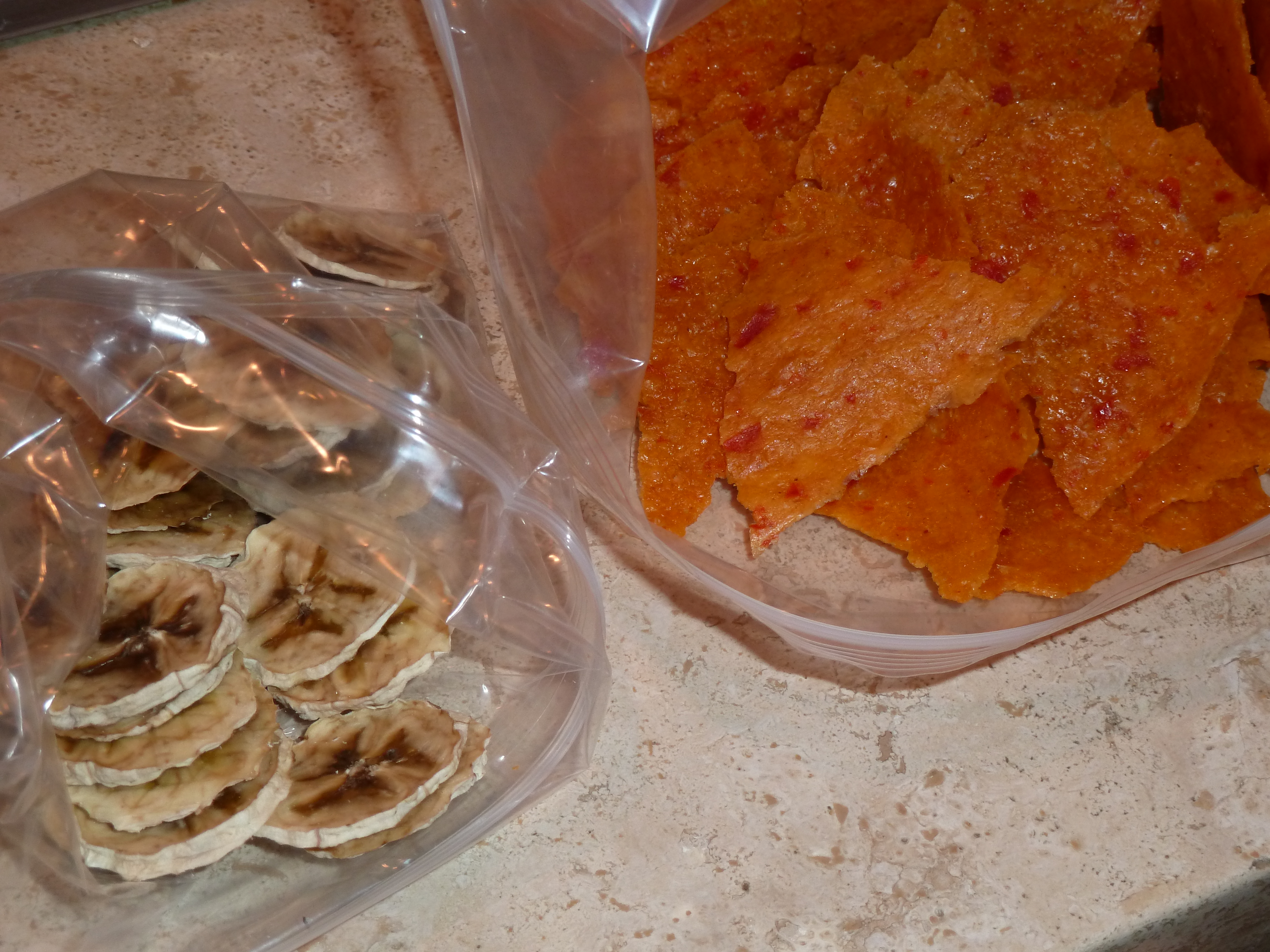This morning before I left for work I put sliced bananas on one of the trays. They weren’t even quite ripe when I put them in but they were really sweet and almost caramelized after they dried.