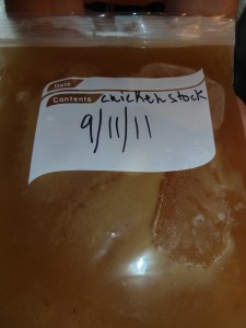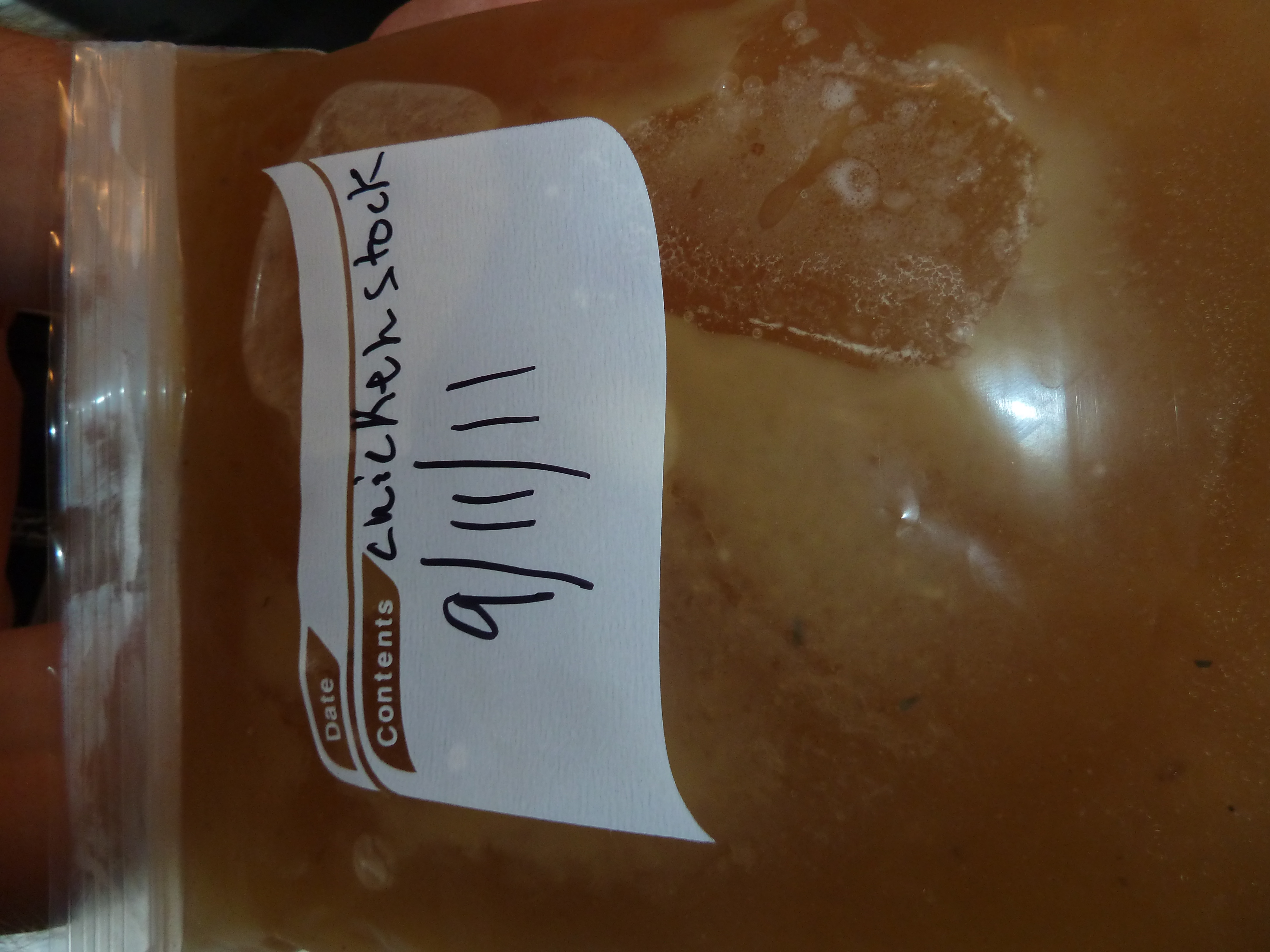 Tip: when freezing broth, soup or other liquids, put it into a gallon ziplock and freeze it on its side. It can then be stored more easily (can be shoved into a small corner of the freezer) but it also has the benefit of defrosting more quickly than if it is frozen in a big block (like in a tupperware).
