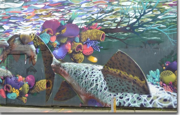 Isn’t the wall below pretty? Look at the door in the bottom left corner to get an idea of how big this mural is. We passed it on the way to Salumi and I had to stop and get a shot.