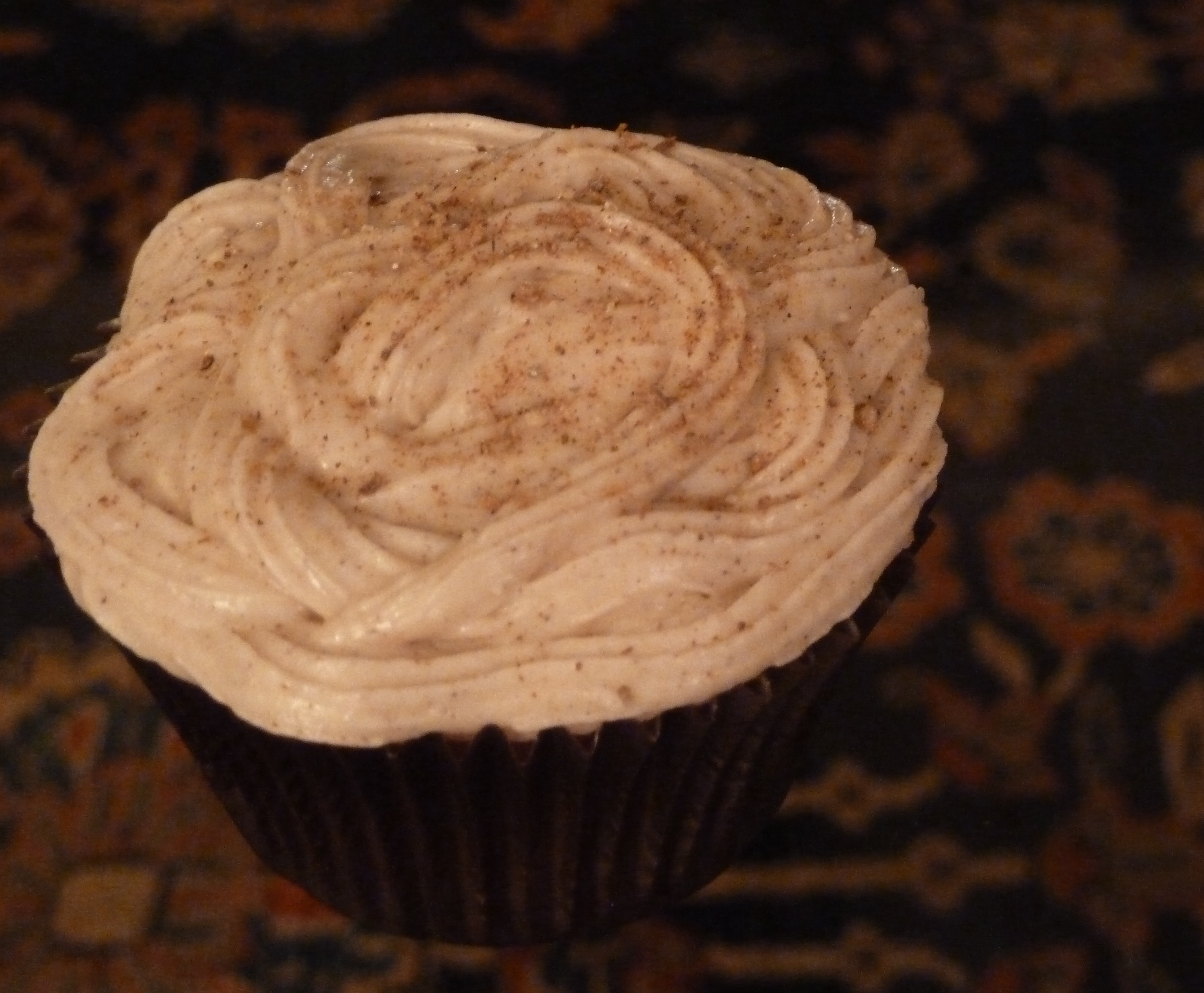 Put 18 cupcake liners into muffin pans and fill evenly with batter. Bake at 350 degrees F for 15-18 minutes. Cool, then top with Cinnamon Cream Cheese Frosting (recipe below) and sprinkle a bit of cinnamon‐sugar on top.