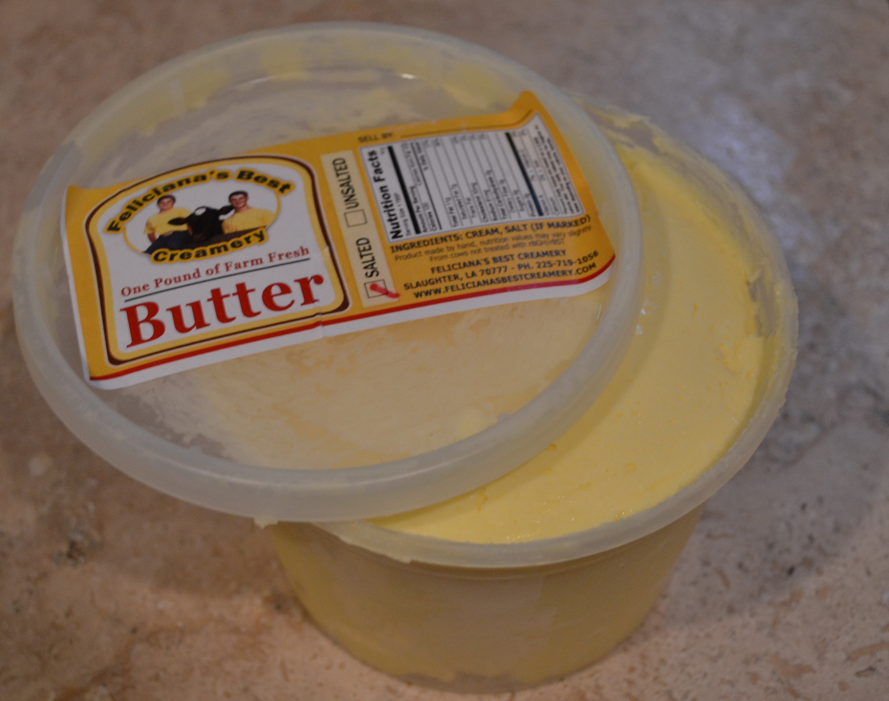 One more thing.  This butter. Its heaven.  We picked it up from the Feliciana’s Best stand at the farmers market in Baton Rouge recently and I am dying over it.  I meant that figuratively, but I probably am dying literally too.  Its like European-high in butterfat, but its SO worth it.
