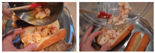 Fill the grilled rolls with the lobster mixtures.  The lobster in the Connecticut rolls should be served warm and the lobster in the Maine rolls should be cold.