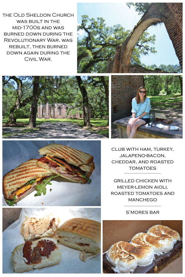 Finally, heading out of the city on the way to Jason’s wedding in Hilton Head, we picked up sandwiches at Caviar & Bananas and took them to the Old Sheldon Church Ruins. This place was gorgeous. I cannot get over how beautiful the arches and columns were. Also, the sandwiches (more bacon) were awesome.