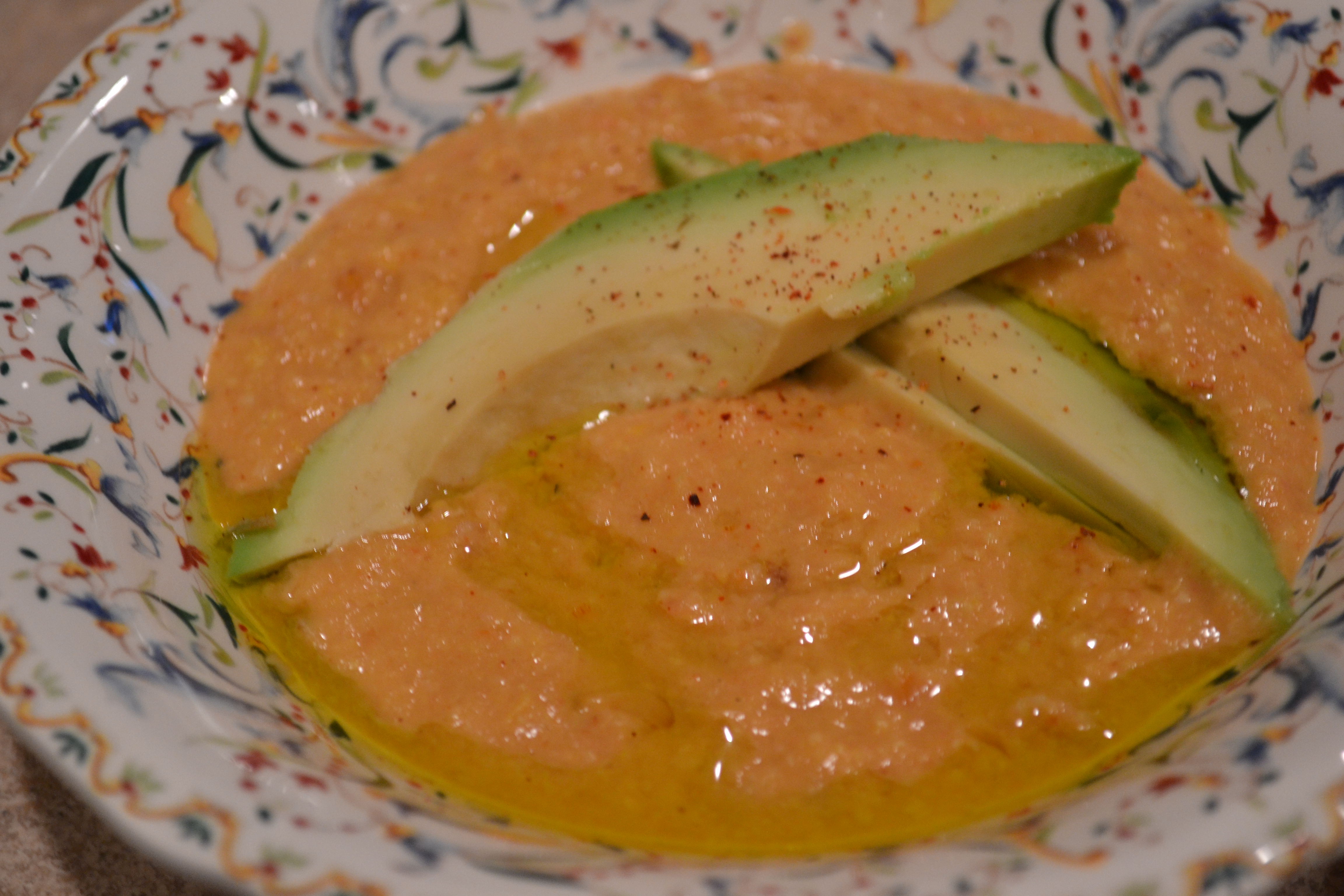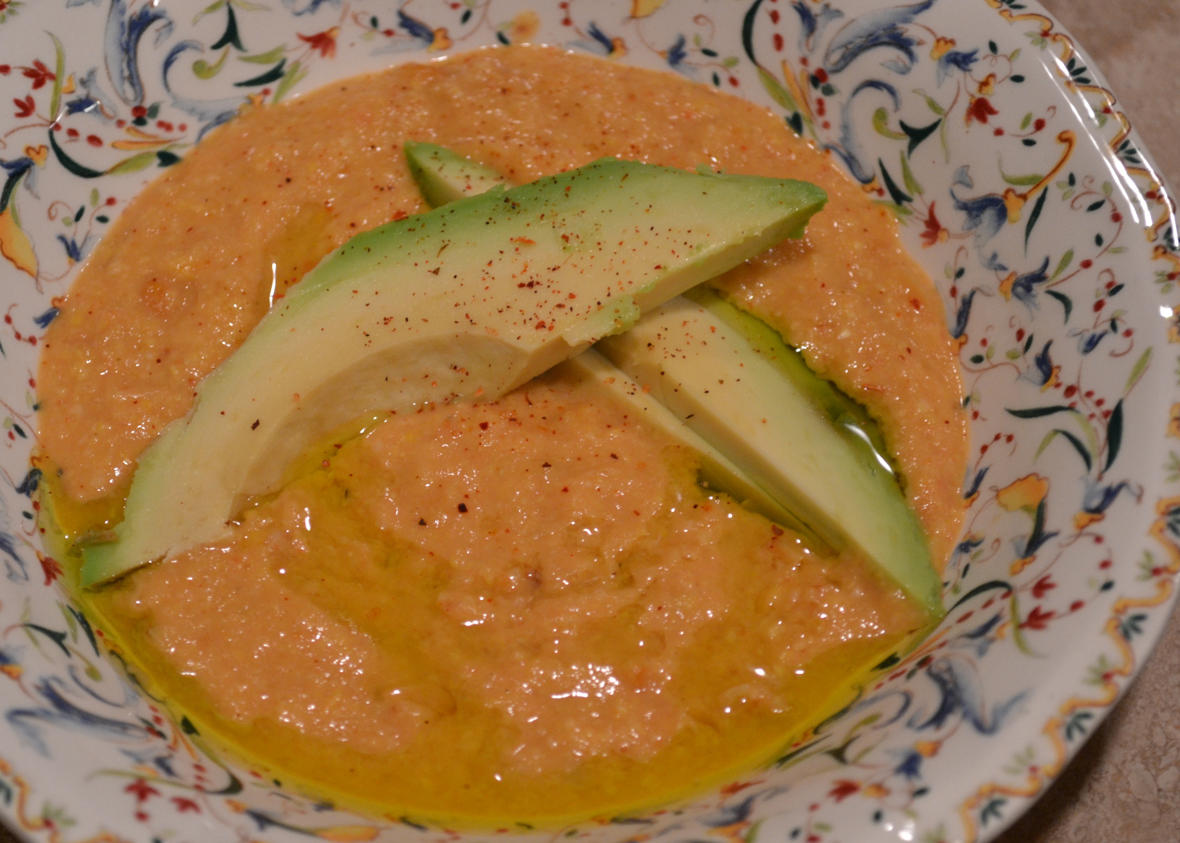 Taste for seasoning and adjust as necessary. Ladle soup into bowls and garnish with a drizzle of olive oil, avocado slices, and chipotle seasoning.