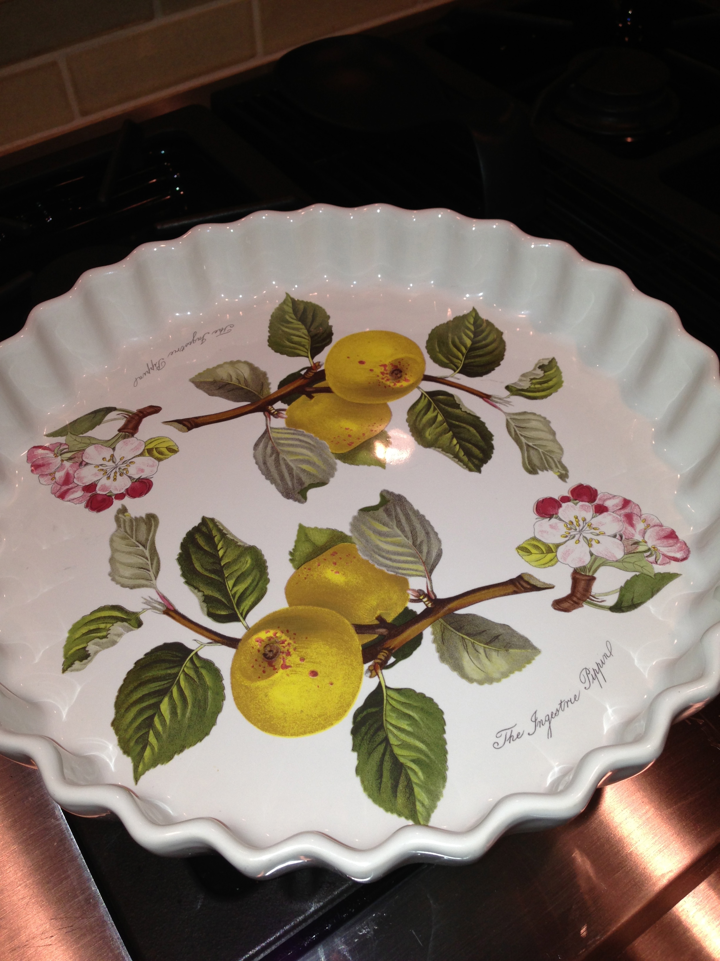 Also, we have this pretty dish that I have never used and I am not sure where it came from except that I sort of think it was my husband’s in college, which means it was my mother-in-law’s, but I don’t know why he would have brought a tart dish to college except that he is SUPER prepared for life. I love that about him. 🙂