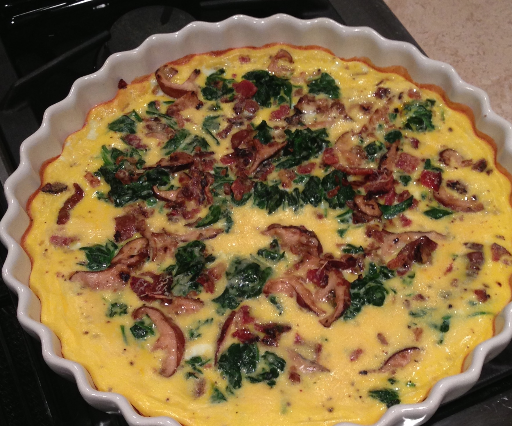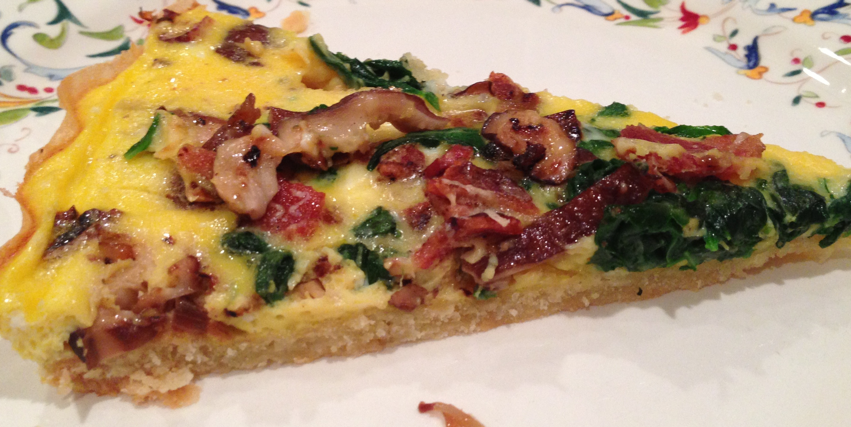 spinach, bacon, and shiitake quiche