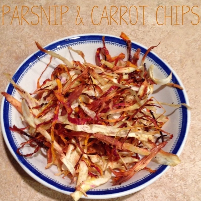 To make these, use your vegetable peeler to make thin strips. Toss them with a little olive oil, salt and pepper. Lay the vegetables on a cooling rack that has been placed on a cookie sheet. Bake them in a 400 degree F oven for 12-15 minutes, until lightly browned and crispy.