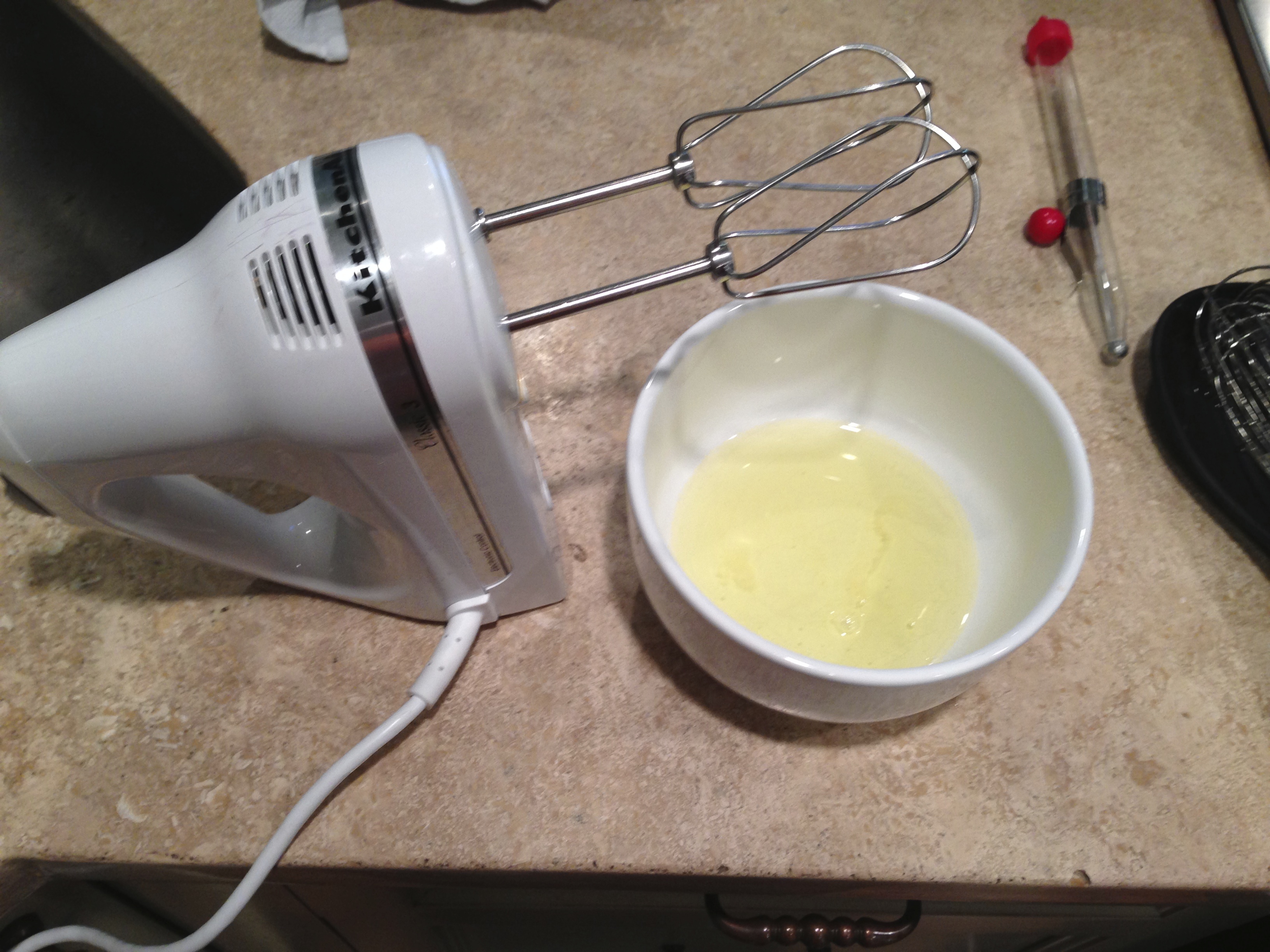 You’ll need beaten egg whites in the middle of the next step, so go ahead and beat them now until stiff peaks have formed and set them aside.