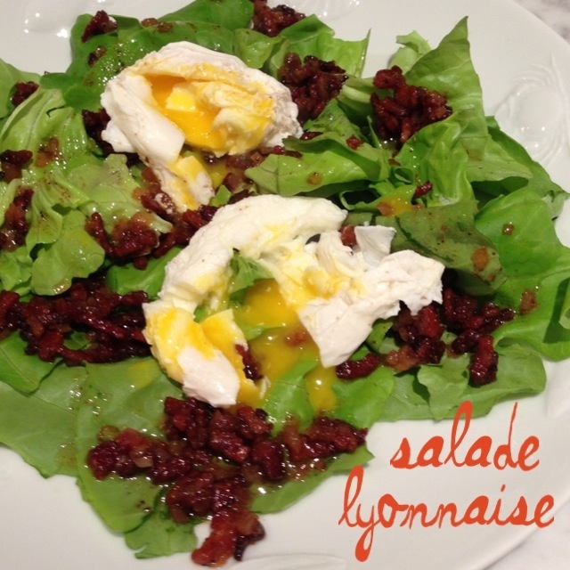 Pour the warm dressing over the greens (they should wilt just a bit), then top each portion with an egg and serve immediately.
