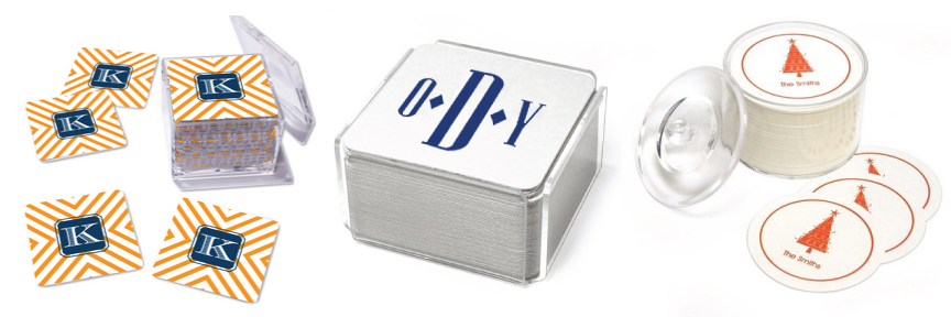 But I really loved the idea of the coasters since they’re disposable. They come in sets of 50, which makes them perfect for pulling out when you have large groups of people over. And it is such a nice, personal touch to have our names on them.