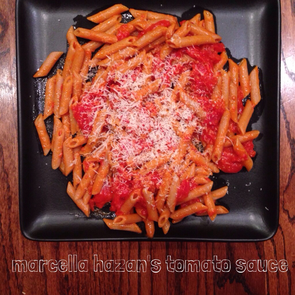 When I heard Marcella Hazan passed away this week, I realized how long it had been since I’d made this lovely sauce. So I pulled out a can of San Marzano tomatoes, an onion and a stick of butter. Then I poured a glass of wine and inhaled the aroma of fresh, sweet sauce cooking on my stove.